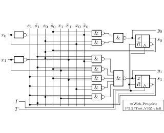 - Automaten: Entwurf mit KV-Diagrammen, Beschreibung in VHDL, redundante Zustände, Spezifikation und Entwurf.